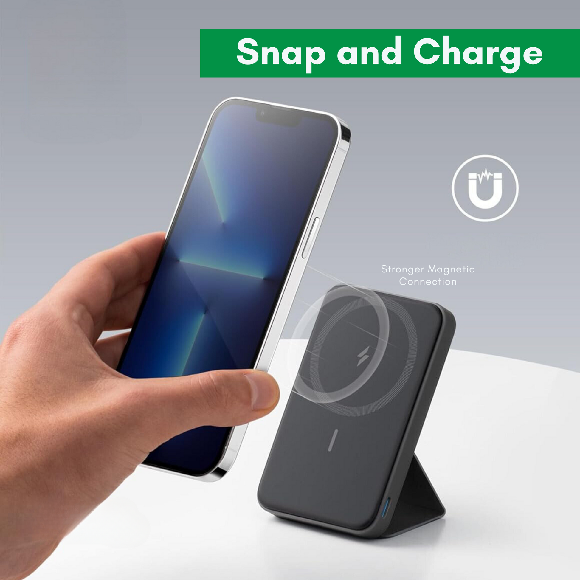 ⭐⭐⭐⭐⭐ “This little charger has been an absolute game-changer! I no longer worry about my iPhone dying when I’m out and about. The magnetic feature holds the phone securely in place, even when I'm on the move, and I can still scroll and chat without bulky wires. Plus, the built-in stand makes watching videos hands-free so convenient. Absolutely worth it for anyone who’s always on the go!”