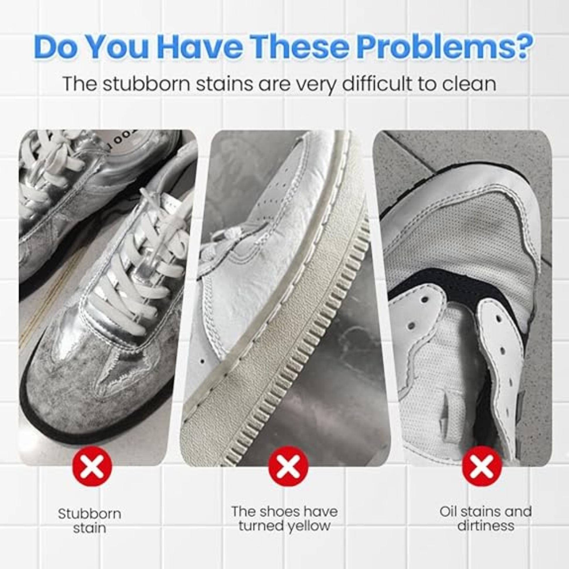 White trainers collect dirt exactly where it shows most — the toe box, side walls, and rubber sole. SOLEBRIGHT is designed to break down those stubborn stains quickly, lifting grime, scuffs, and yellowing so shoes look fresh again without hours of cleaning.