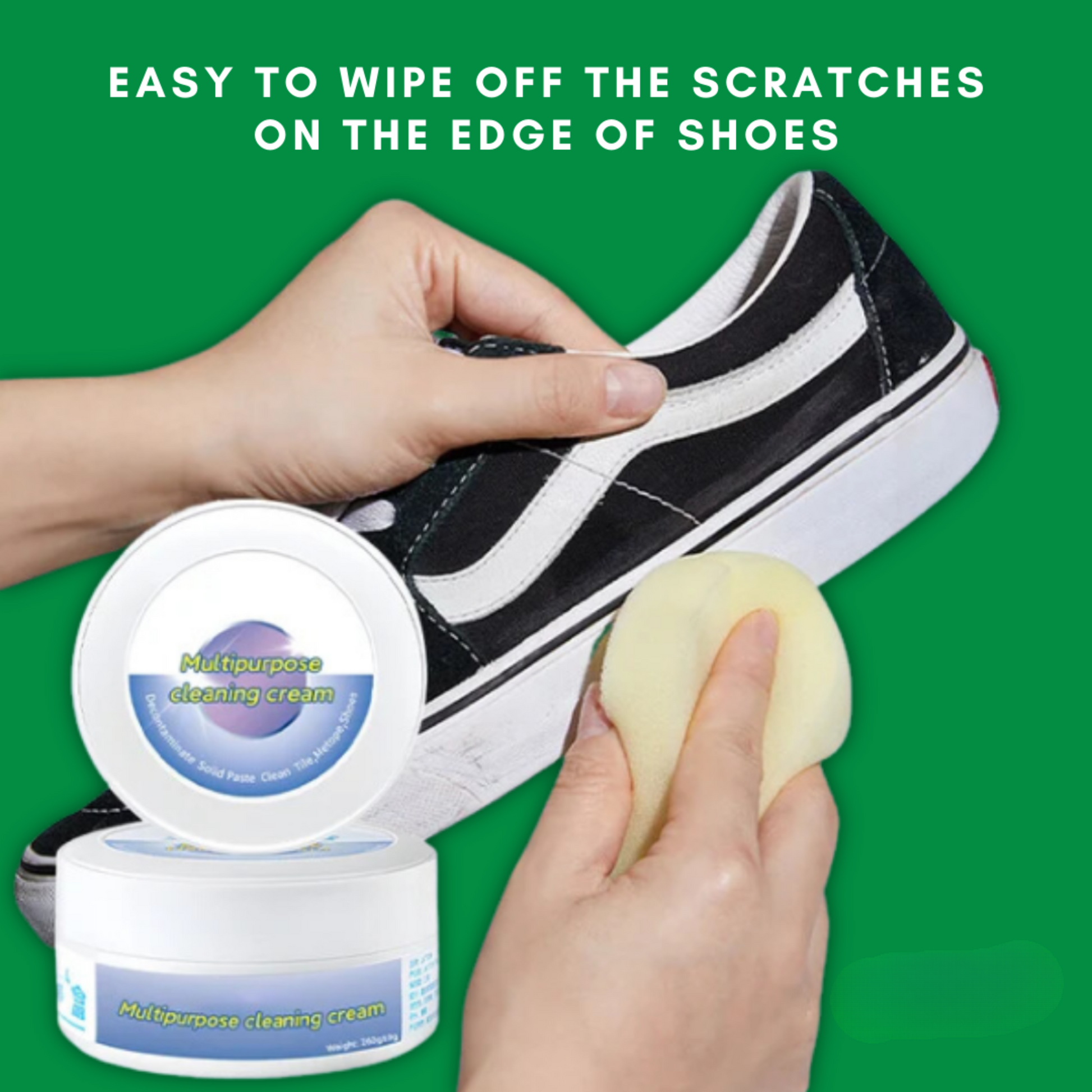 STAINVANISH doesn't stop at shoes—it's a versatile solution for a range of cleaning challenges. Whether it's small white shoes, sports shoes, canvas shoes, or even leather shoes, this multi-functional no-wash cleaning cream can do it all. It extends its cleaning prowess beyond footwear, effectively revitalizing furniture, leather bags, car interiors, floor tiles, and even plastic or rubber toys.