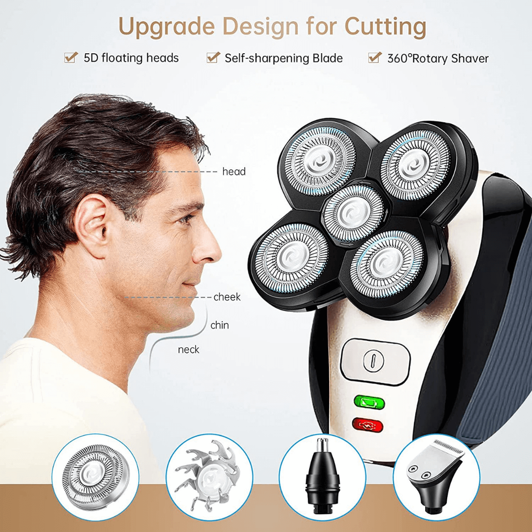 The ergonomically designed five-head shaver gives you total control. Plus, the handle is comfortable to hold.