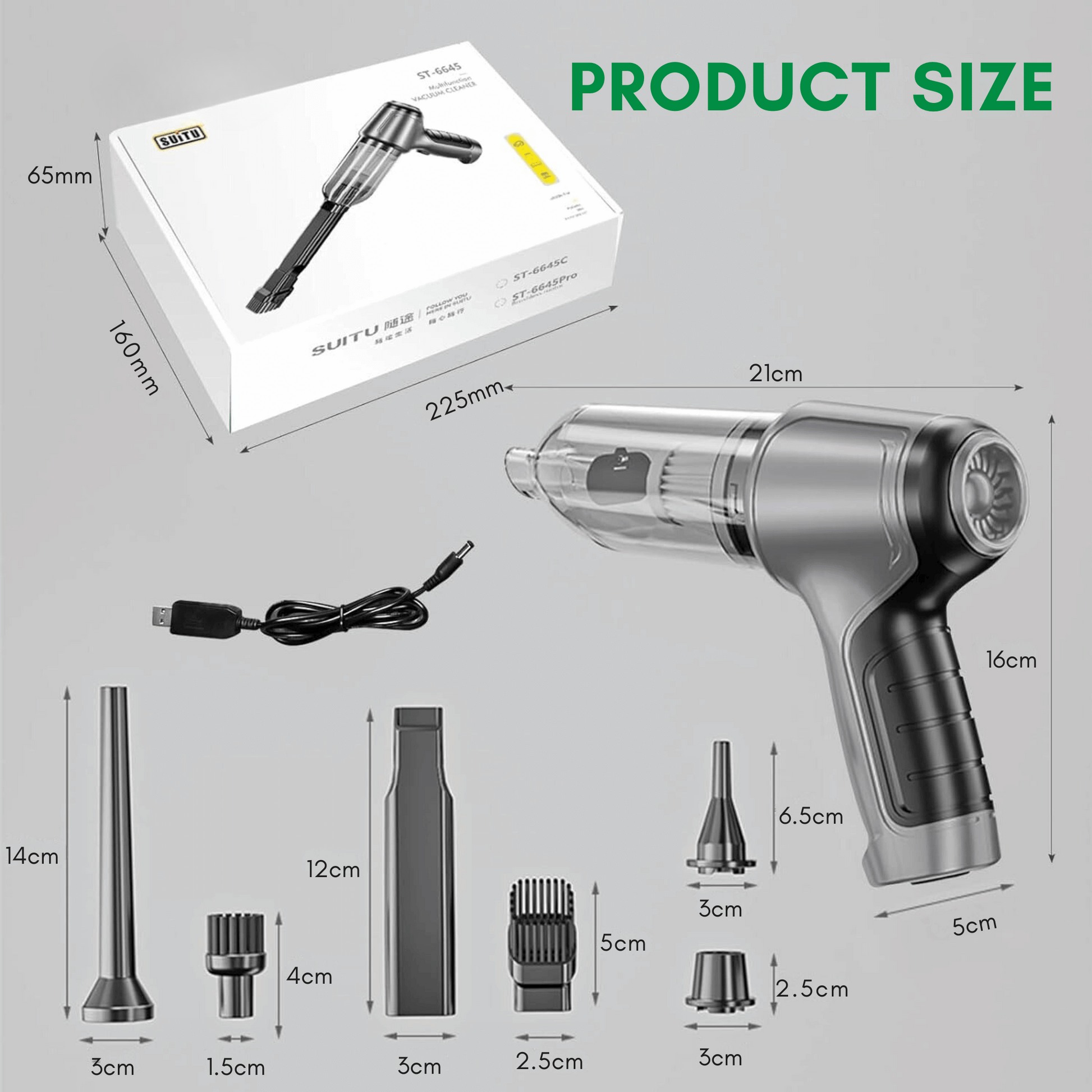 Enjoy the freedom and convenience of a cordless vacuum cleaner with SWIFTVAC. Our electric air duster blower is specifically designed for automotive use, featuring a powerful motor that delivers quick and long-lasting performance. Effortlessly remove dust and debris from your car without the hassle of tangled cords.