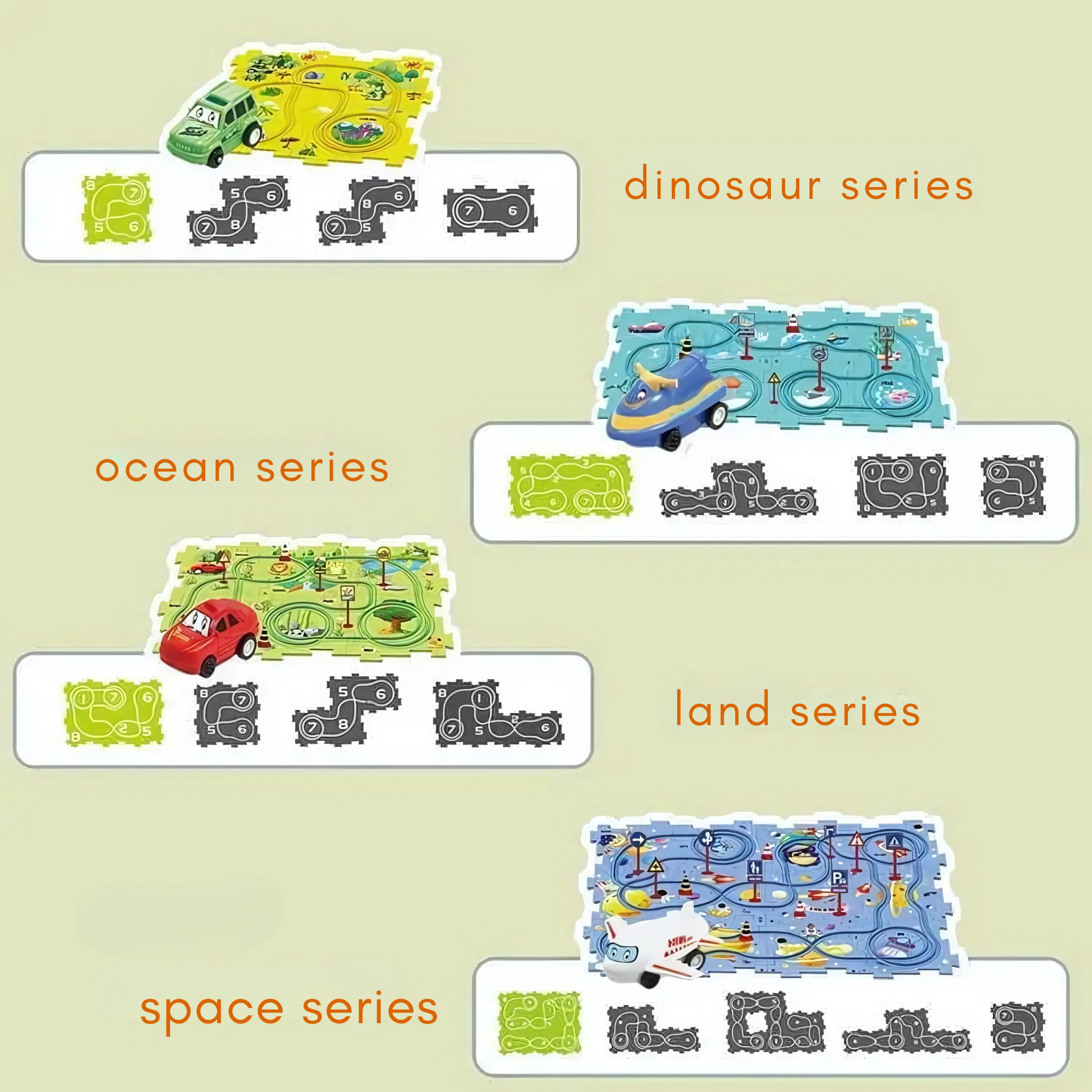 ✔️ Modular Track Design: Interchangeable track pieces let kids create endless layouts and cityscapes.