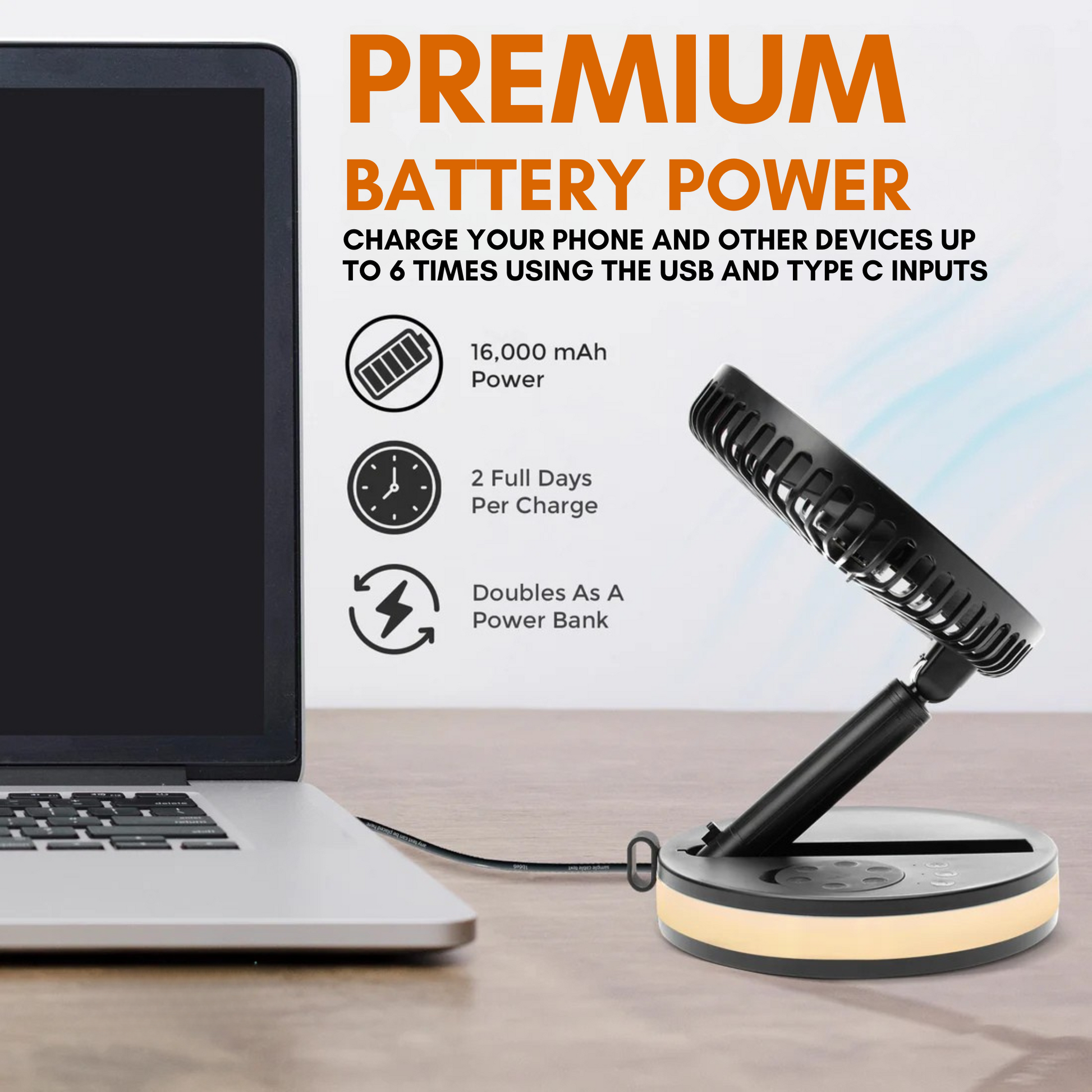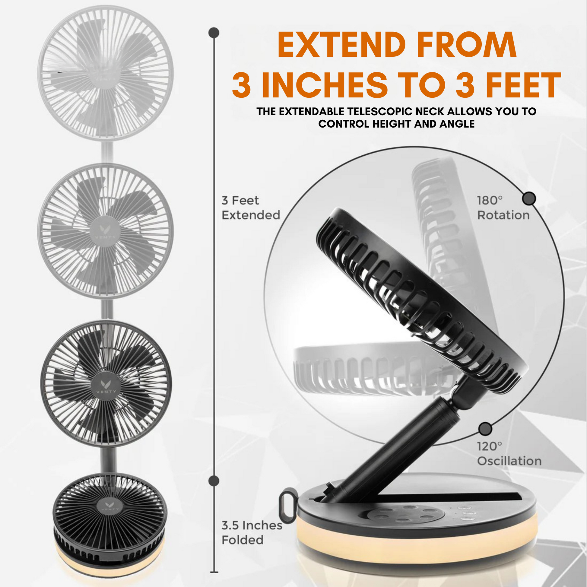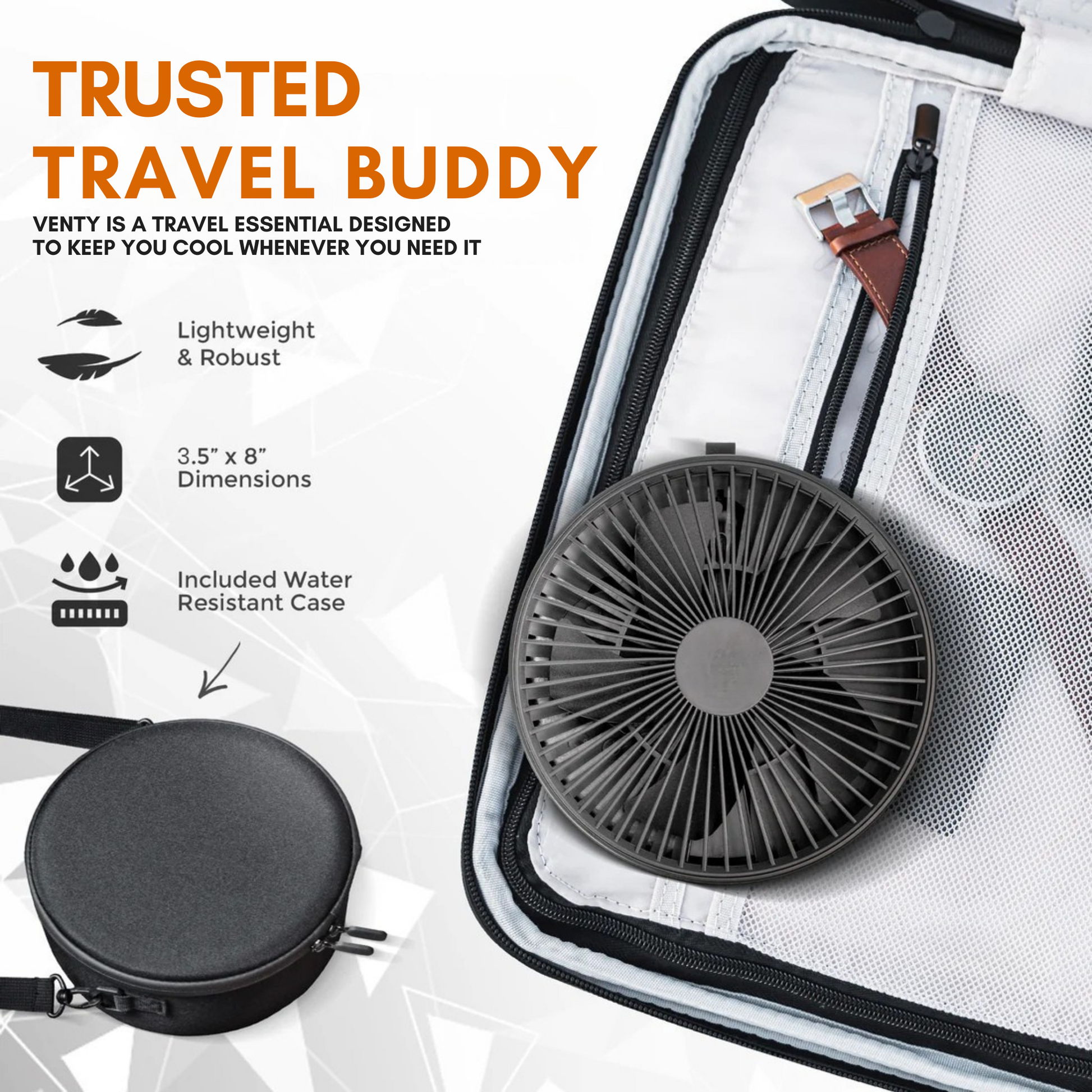 Unlike bulky, cheap fans that drain battery life in minutes, VENTURA is designed for real travelers. The foldable, lightweight design makes it easy to pack, while the USB & USB-C charging ports ensure you're never left without power, even on the go.
