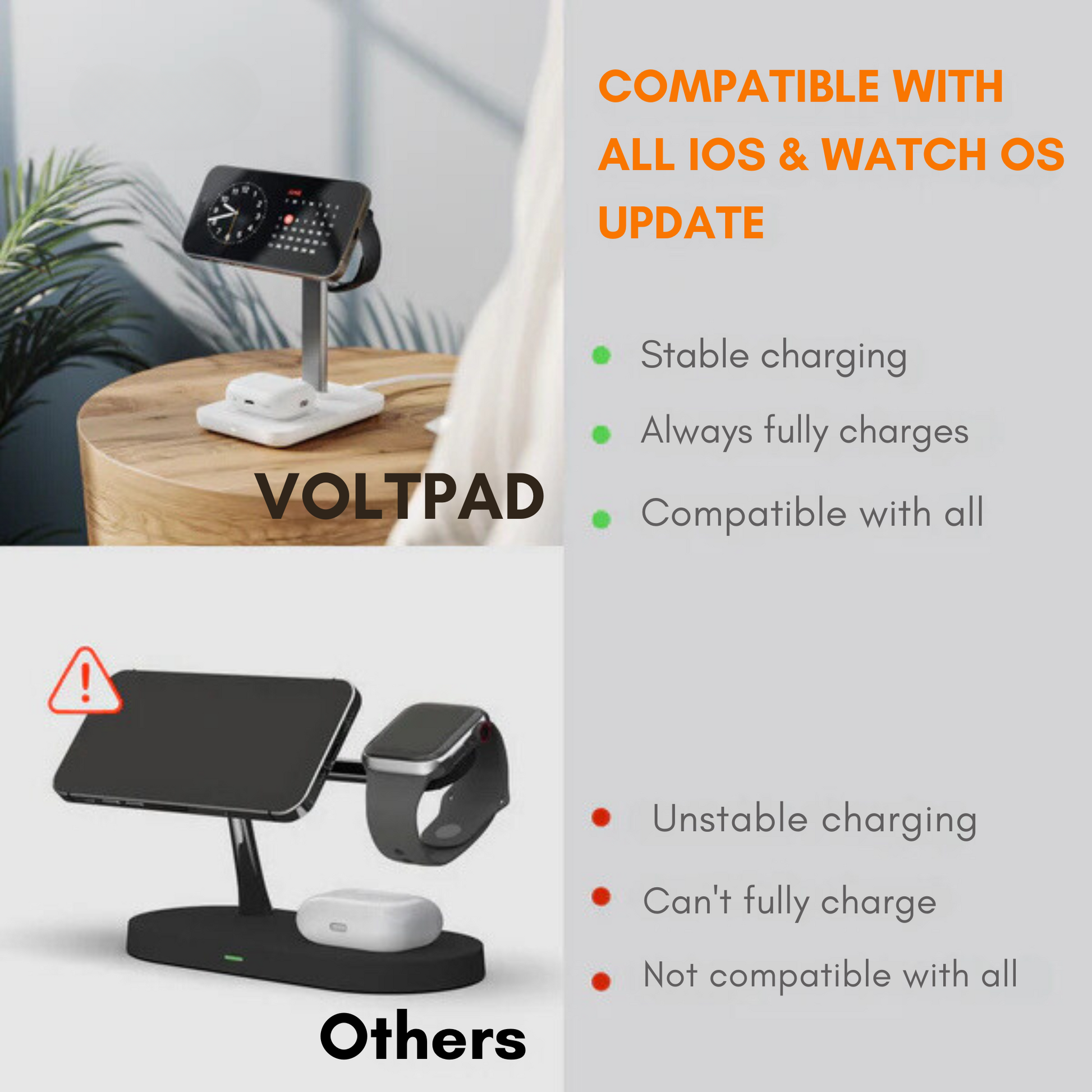 The VOLTPAD solves the age-old issue of messy, inefficient charging setups by combining cutting-edge wireless charging technology into one sleek, compact station. With dedicated spots for your iPhone, Apple Watch, and AirPods, it eliminates the need for tangled cables and single-use chargers, keeping your desk organized and visually appealing.