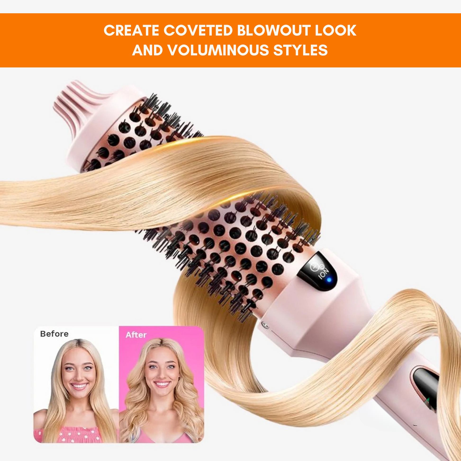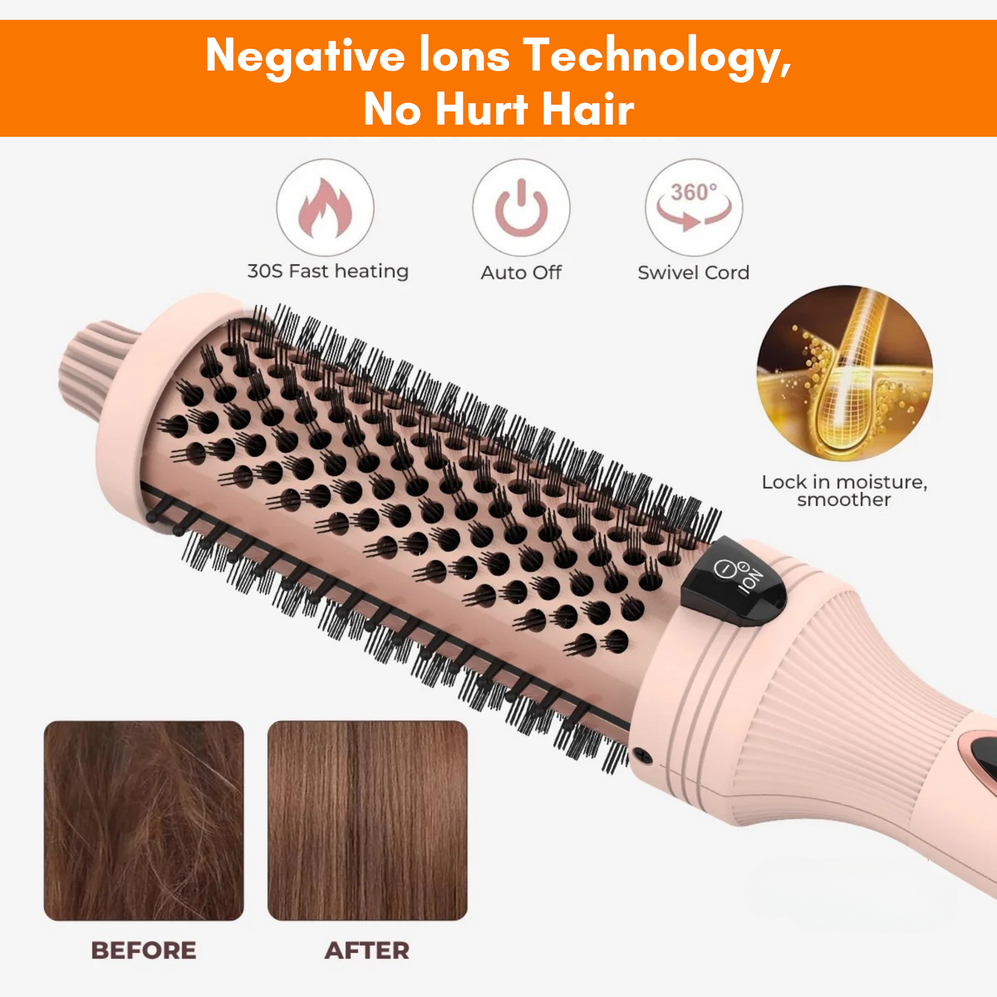 Tired of flat, lifeless hair? Struggling with multiple styling tools that leave your hair dull or frizzy? VOLUMAX is designed for busy women who need professional results—fast. The advanced Negative Ion Technology & Two PTC Heaters work together to volumize, smooth, and add shine in just one step. No more juggling flat irons, curling wands, and round brushes—this is the only tool you need.