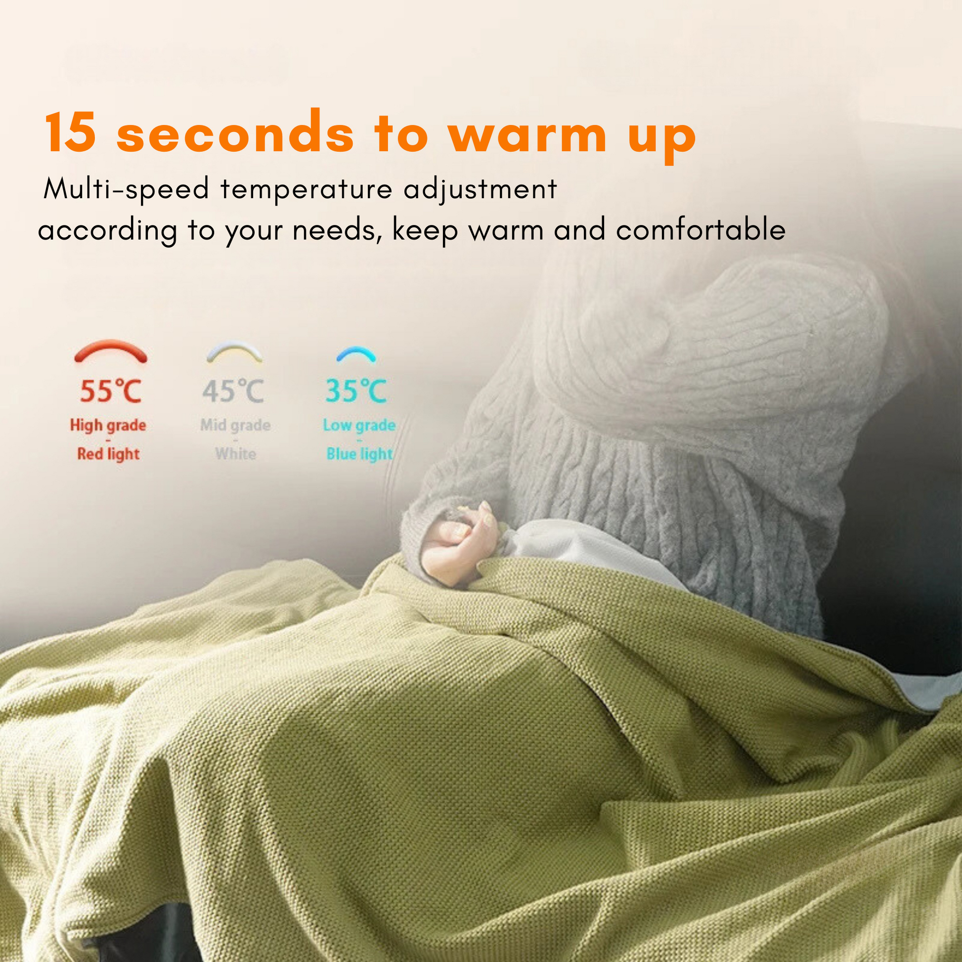 ✔️ Rapid 15-Second Heating: Instantly feel warm without waiting.