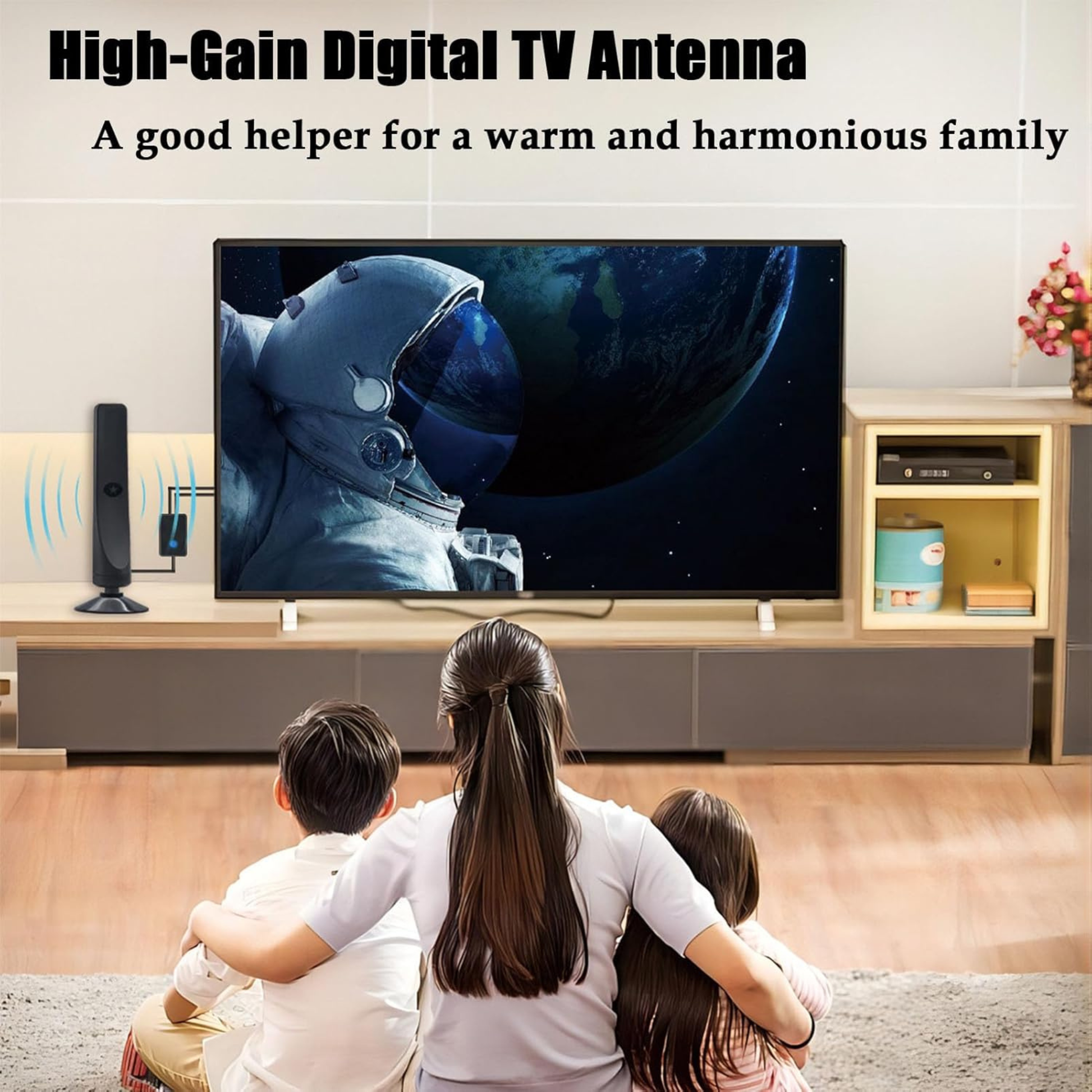 The slim vertical design installs in seconds with the secure suction base — ideal for windows, walls, or TV units. No ladders, no specialist visits, no confusing tuning steps. Just plug in, scan, and watch.