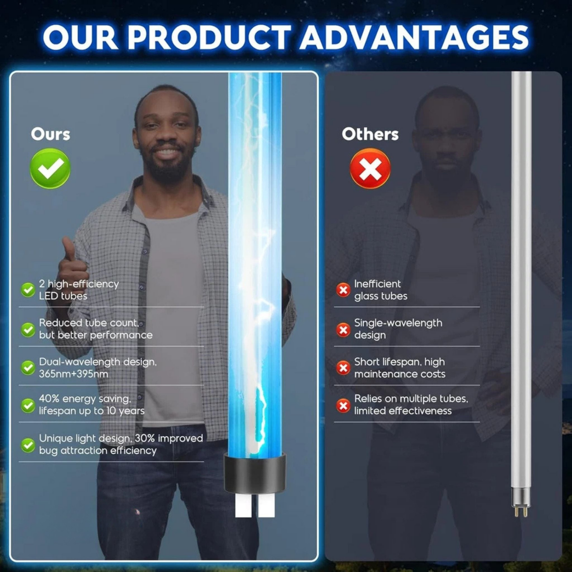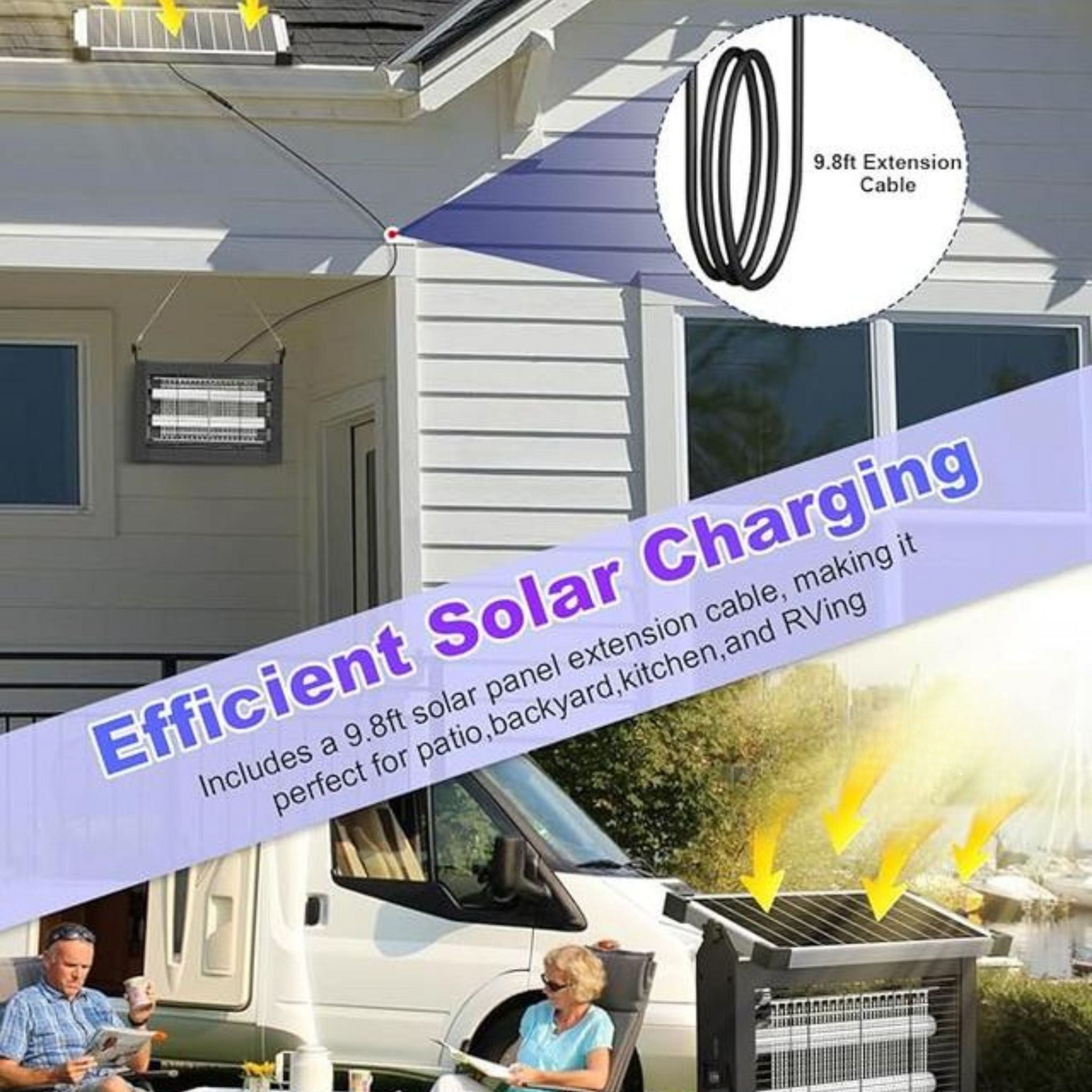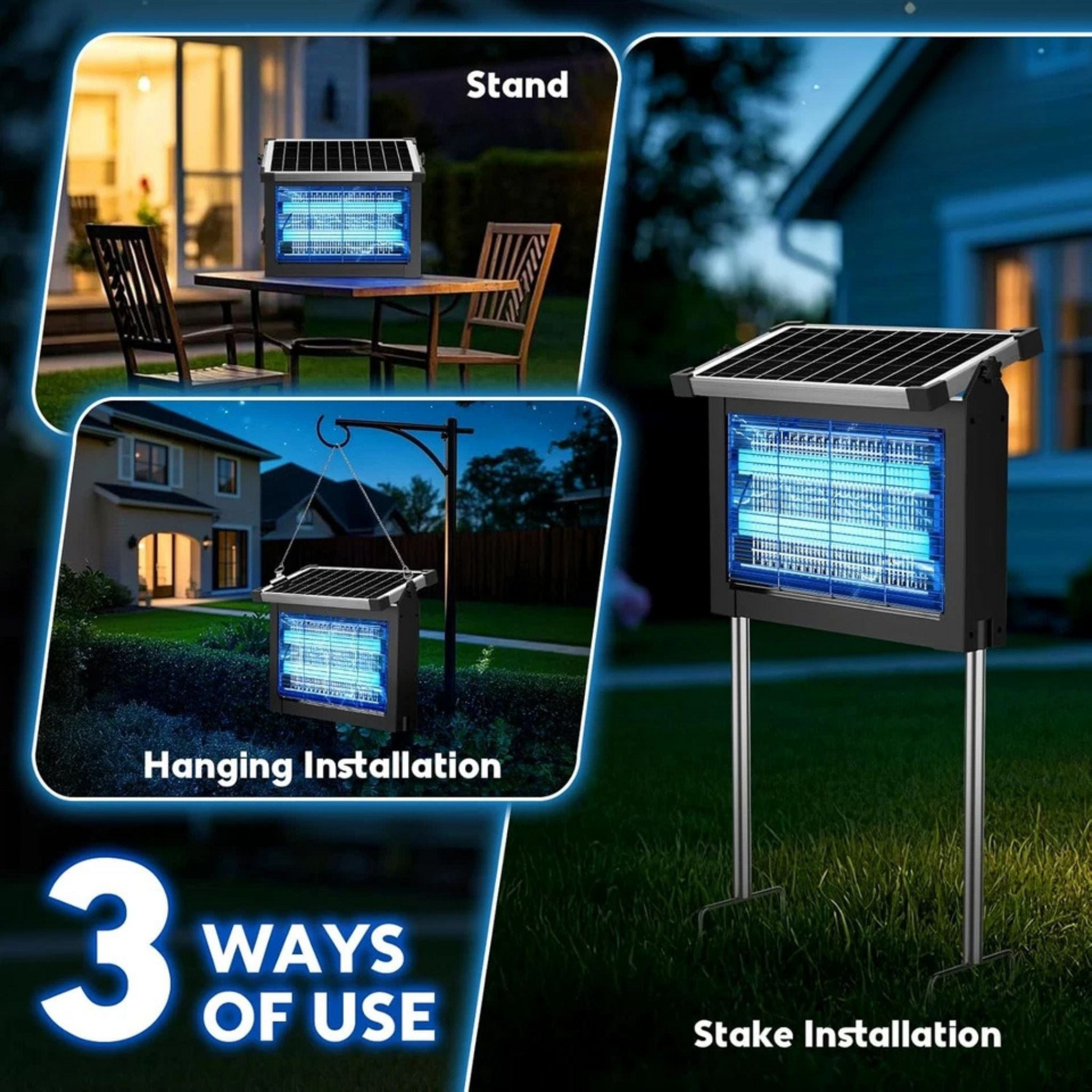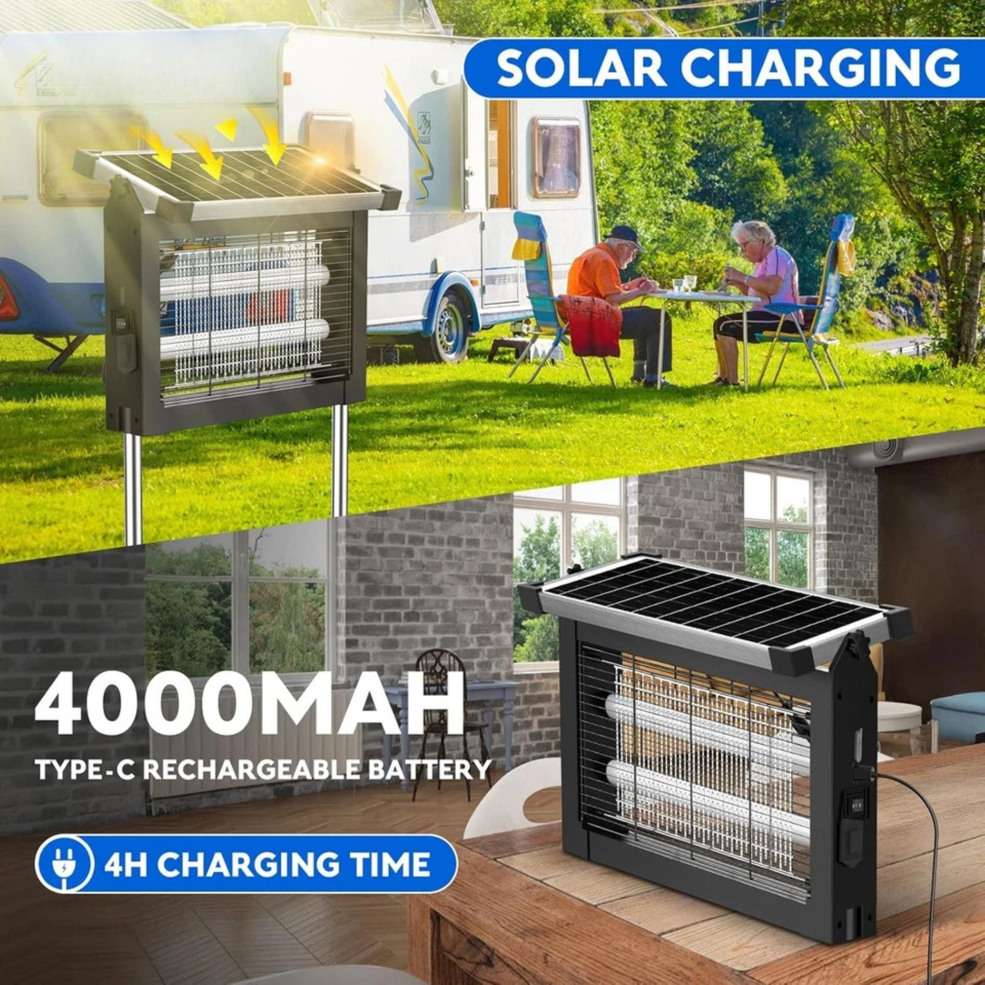 ✔️ Automatic Day/Night Function – Charges by day and turns on automatically at dusk, giving you hassle-free, round-the-clock insect protection.